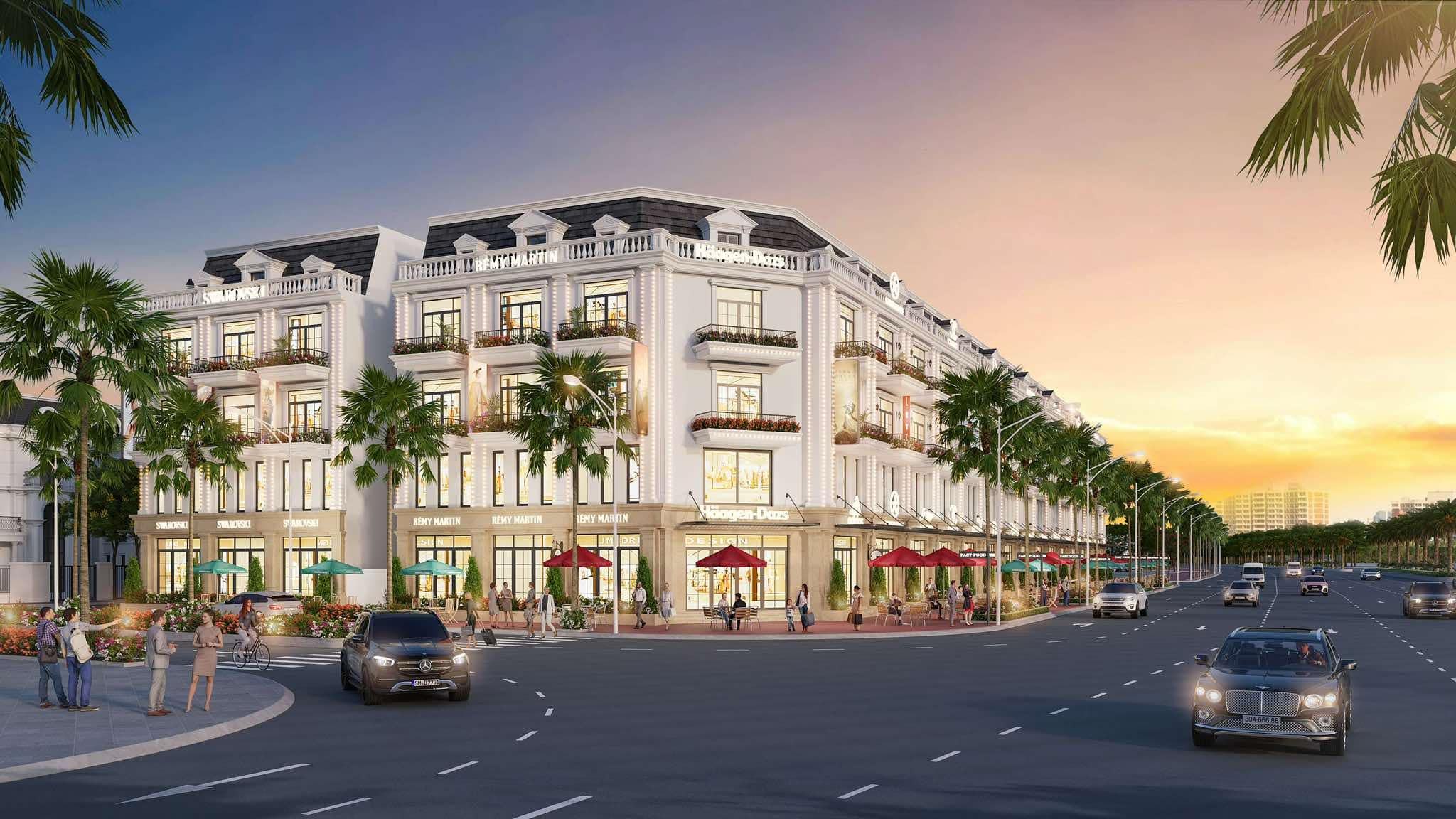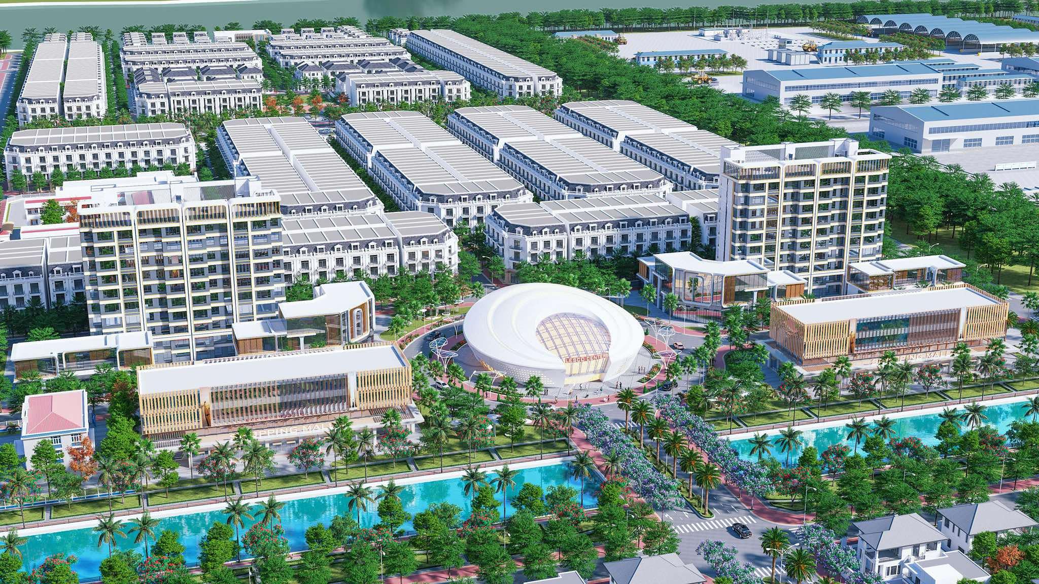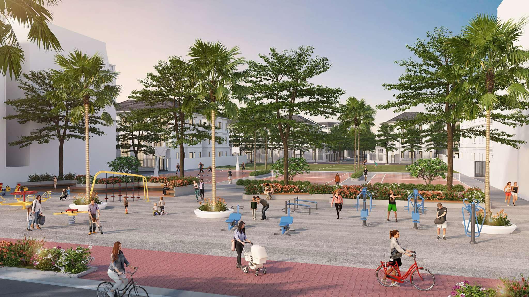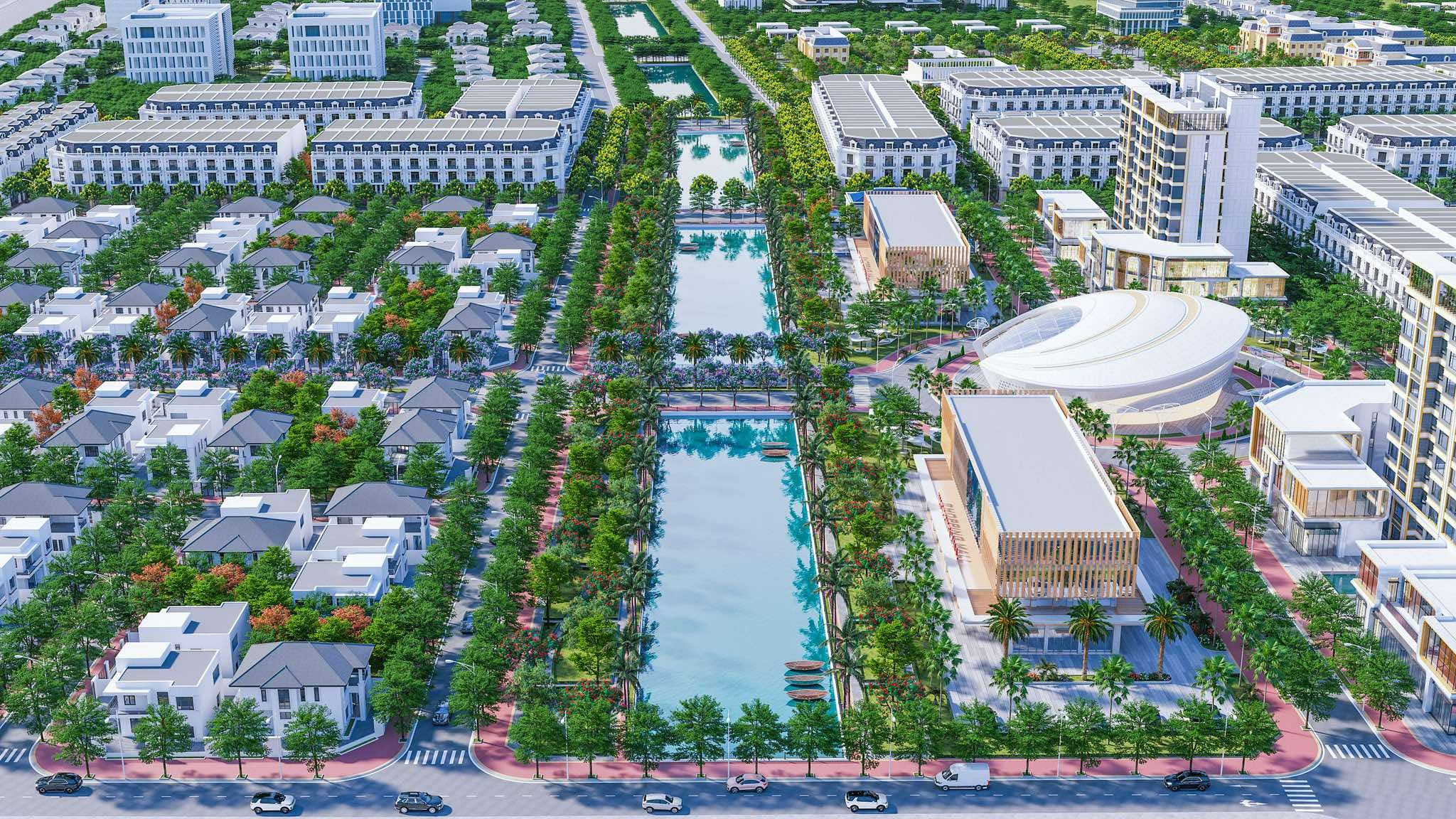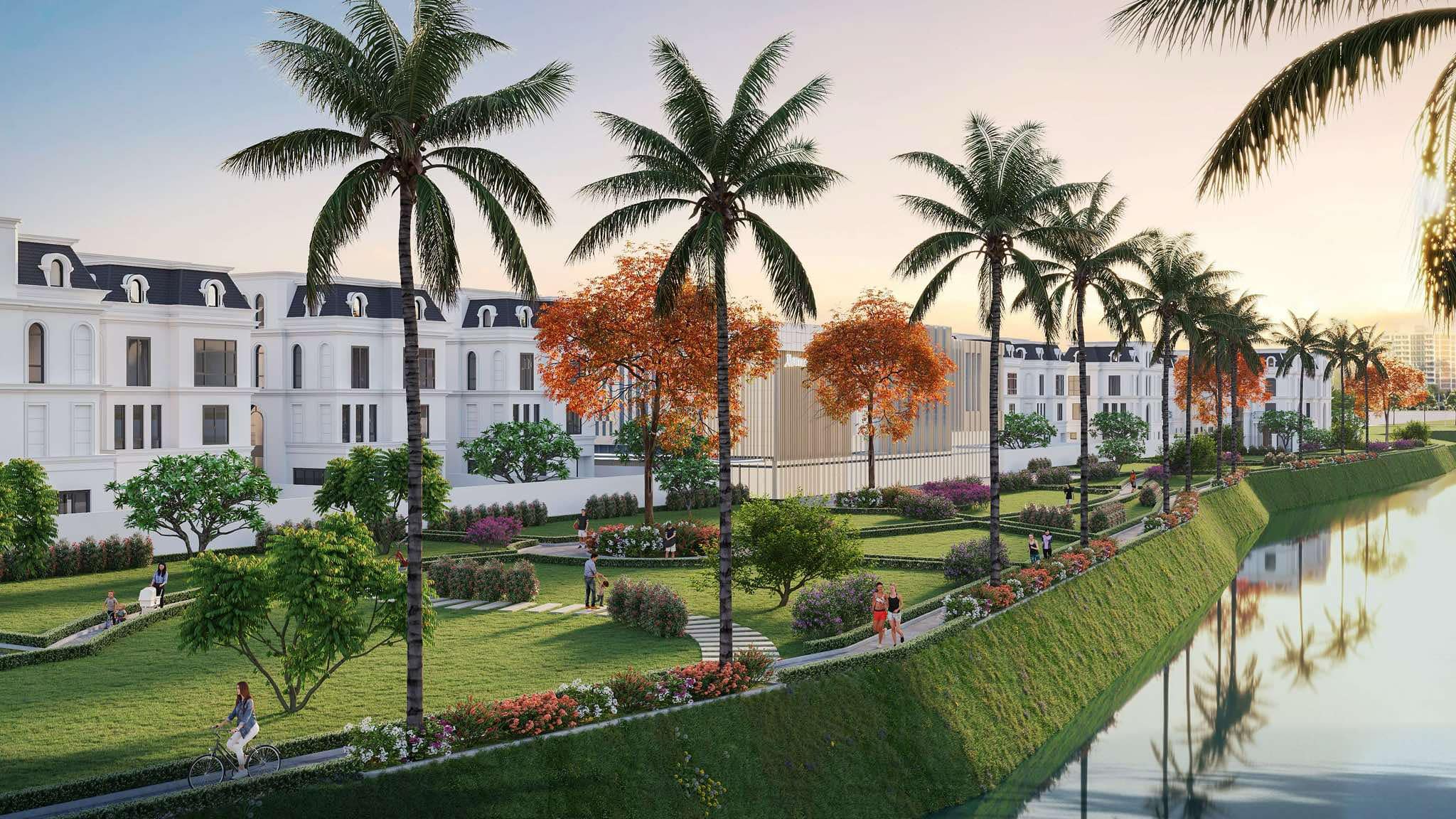 - Tiện ích: Quảng trường ánh sáng, tổ hợp giải trí ven kênh, công viên trung tâm, công viên ven sông, lối dạo bộ, chòi nghỉ thư giãn, khu vui chơi trẻ em, trung tâm thương mại, trường học nội khu, Club House, khu thể thao đa năng, bệnh viện..