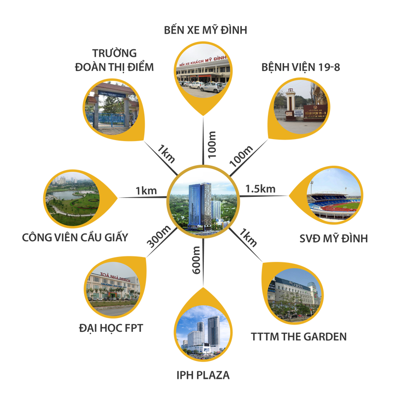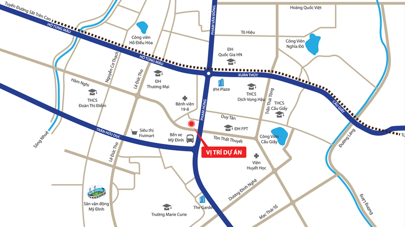 Tọa lạc tại “khu đất vàng” ngay trung tâm Mỹ Đình, khu vực phát triển năng động bậc nhất Hà Nội, dự án sở hữu vị trí đắc địa, kết nối thuận tiện với các tuyến đường huyết mạch: Phạm Hùng, Trần Hữu Dục, Phạm Văn Đồng, Hồ Tùng Mậu, Nguyễn Hoàng, Trần Bình, tuyến đường sắt trên cao,…