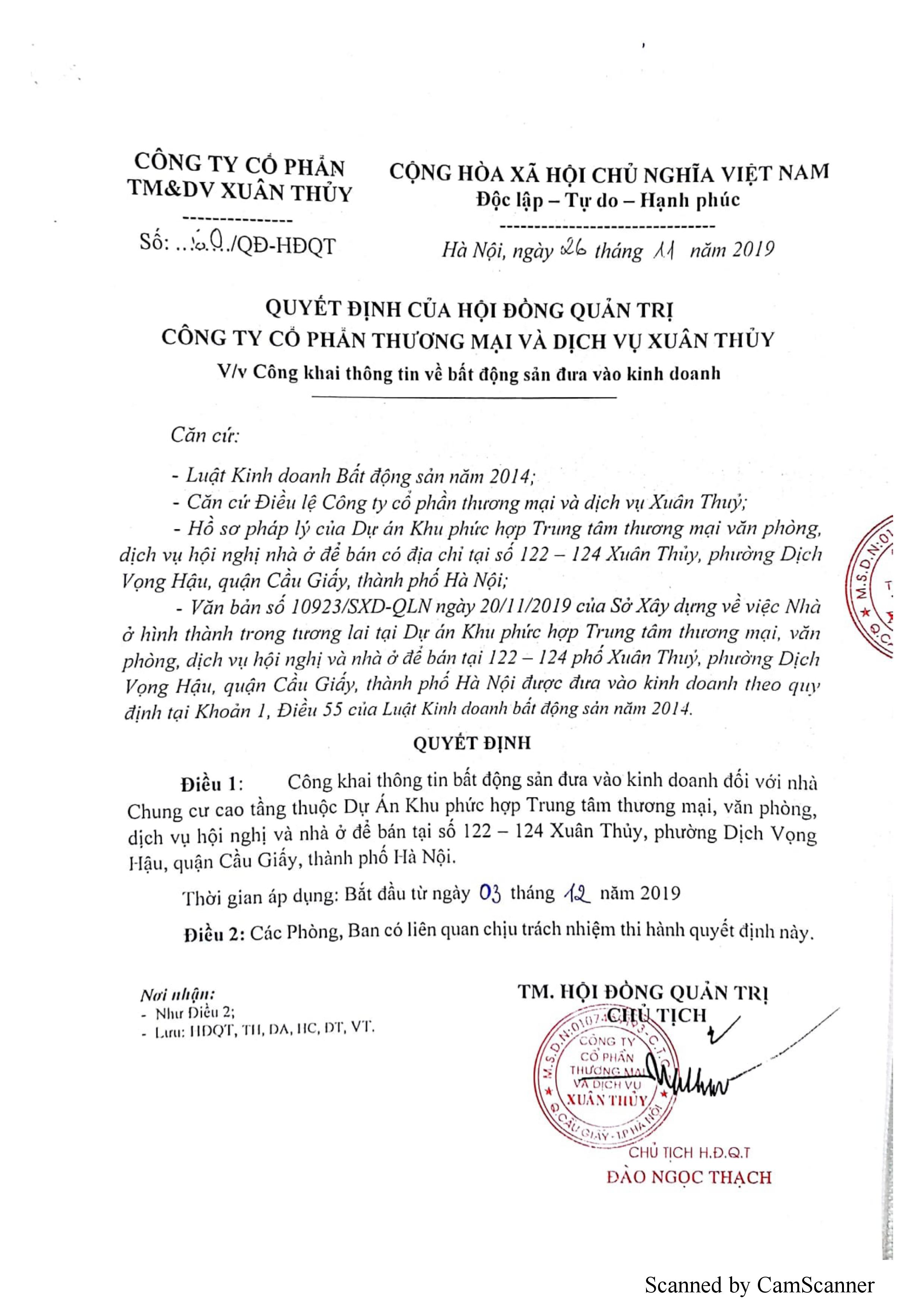 Chủ đầu tư: Công ty cổ phần thương mại và dịch vụ Xuân Thủy