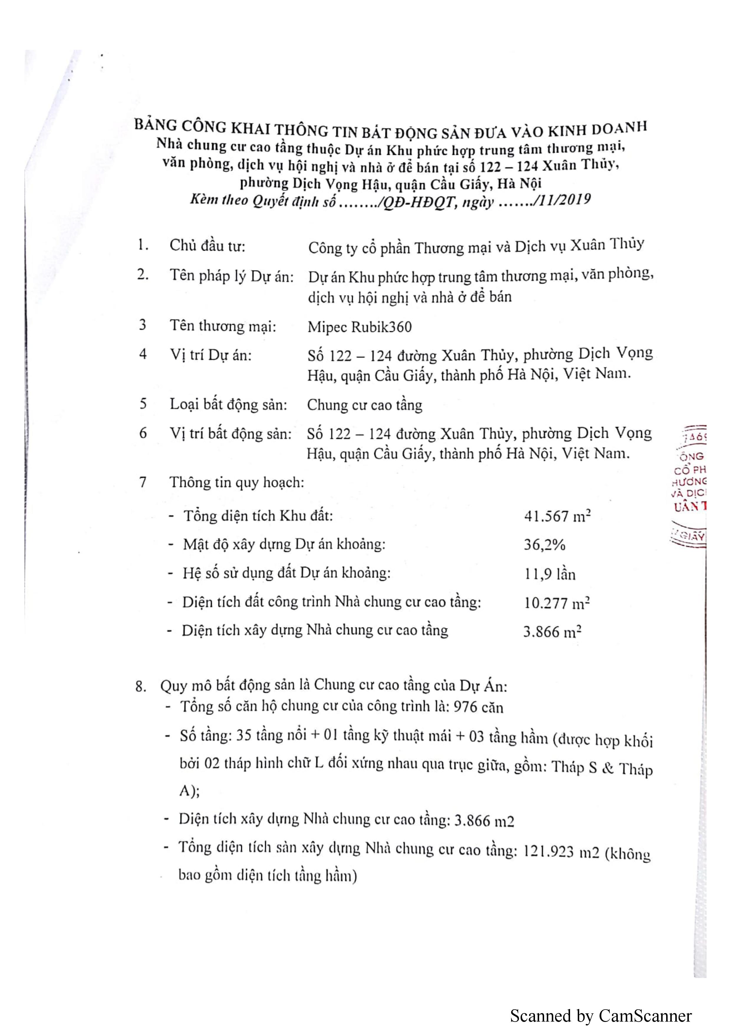 Mipec Rubik360 là tổ hợp căn hộ cao cấp, trung tâm thương mại của Chủ đầu tư Công ty cổ phần thương mại và dịch vụ Xuân Thủy. Dự án sở hữu vị trí đắc địa cùng hệ thống dịch vụ tiện ích đẳng cấp vượt trội, hứa hẹn trở thành nơi an cư và đầu tư hấp dẫn nhất quận Cầu Giấy