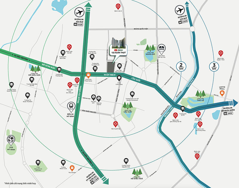 Nằm trong khu vực phát triển sôi động nhất Thủ đô, Mipec Rubik360 Xuân Thủy thừa hưởng trọn vẹn cơ sở hạ tầng đồng bộ trong vòng bán kính chỉ 3km quanh dự án: