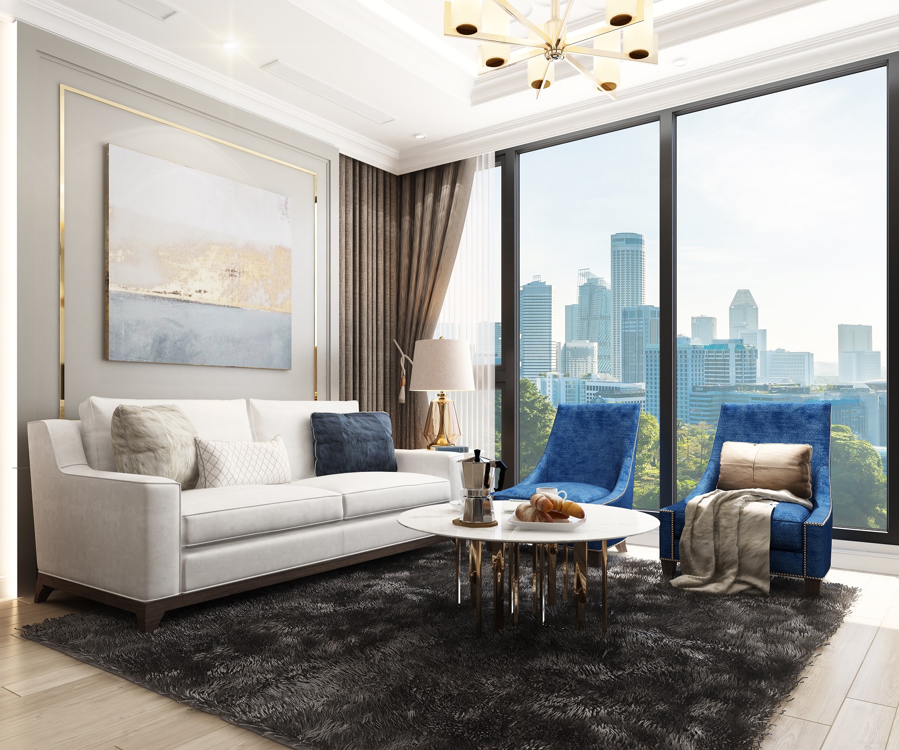 Tất cả không gian phòng khách + phòng ngủ đều lấy ánh sáng tự nhiên