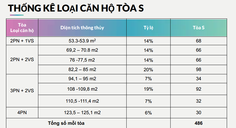 Diện tích căn hộ: 53,3 – 123,8 m2