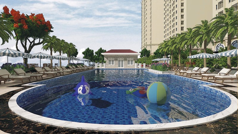 Khuôn viên cây xanh, hồ bơi cao cấp đáp ứng nhu cầu của người dân. Ngoài các dịch vụ tích hợp ngay ở chung cư phục vụ nhu cầu sinh hoạt của người dân, cư dân ở đây còn được sử dụng những tiện ích miễn phí từ phía nhà đầu tư như công viên, khu vui chơi, hồ bơi.