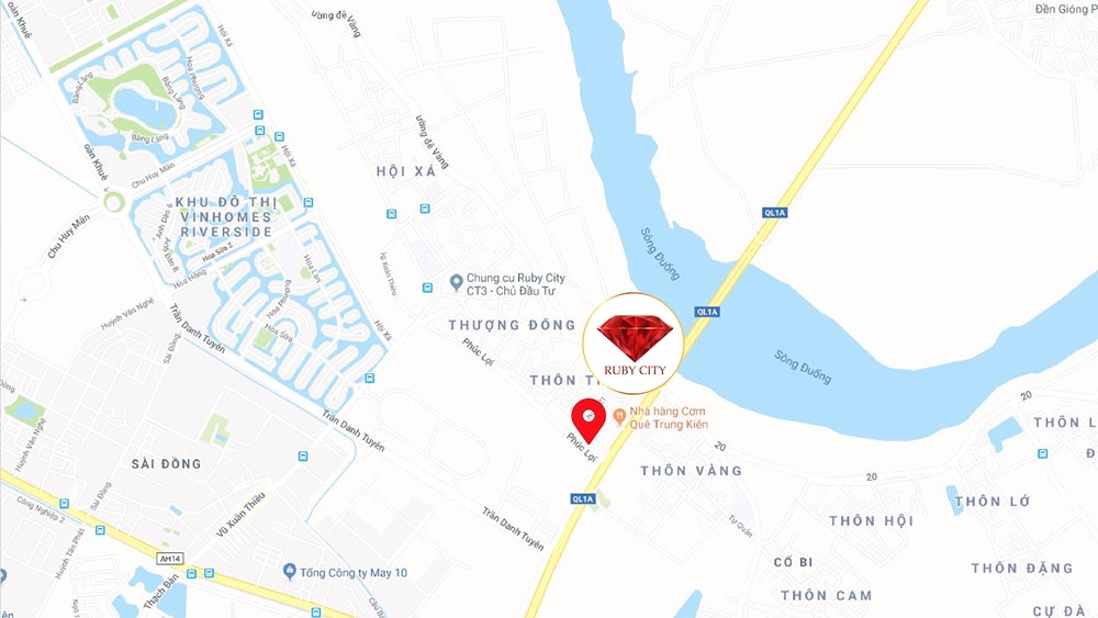 Dự án Ruby City CT3 nằm cạnh khu biệt thự Vinhomes Riverside, khu đô thị Việt Hưng, gần trung tâm mua sắm BigC Long Biên, trung tâm thương mại Vincom Center, trung tâm thương mại Nhật Bản Aeon Mall, liền kề hệ thống trường học từ mẫu giáo đến phổ thông trung học Phúc Lợi, giao thông thuận tiện gần cầu Vĩnh Tuy, cầu Chương Dương, và đặc biệt nổi bật nằm gần quốc lộ 1A giao thông thuận tiện vào nội thành cũng như giao thông liên tỉnh.