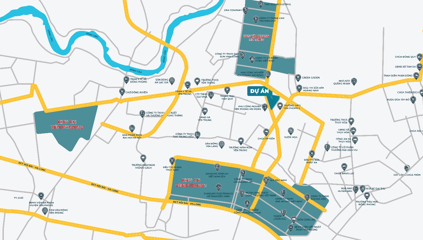 An Bình Golden Town tọa lạc tại khu đất vàng thuộc xã Yên Trung, huyện Yên Phong – nơi vốn được mệnh danh là “thủ phủ công nghiệp” của tỉnh Bắc Ninh. Dự án nằm liền kề trường THPT Yên Phong 2 và ngay gần khu công nghiệp Yên Phong mở rộng. Trong vòng bán kính 2km từ An Bình Golden Town có thể kết nối nhanh chóng đến các tiện ích khu vực cũng như di chuyển dễ dàng đi các tỉnh lân cận như Bắc Giang, Quảng Ninh, Hải Dương …