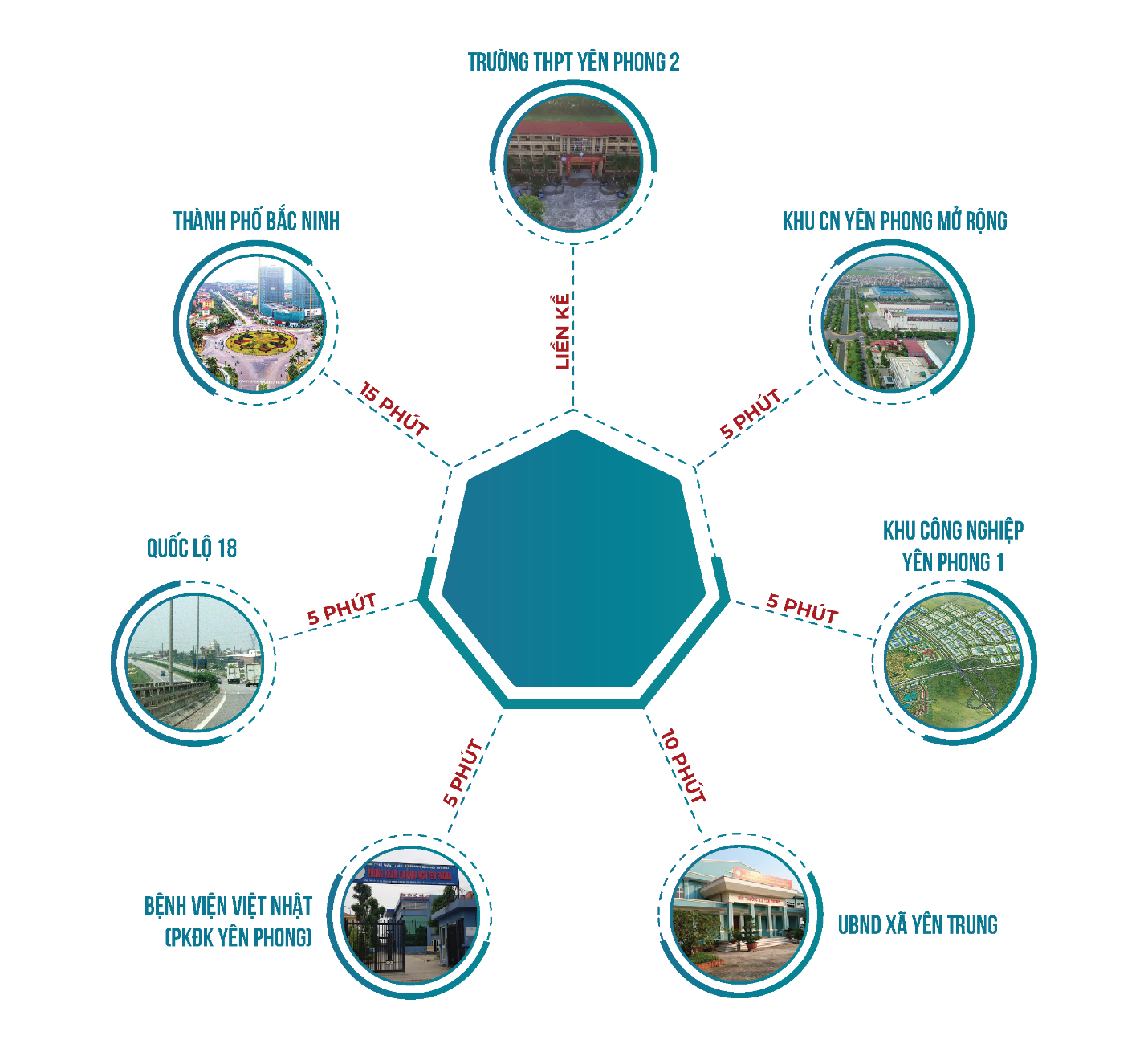 Đặc biệt, dự án chỉ cách trung tâm TP Bắc Ninh khoảng 20 phút đi xe, cách sân bay Nội bài khoảng 40 phút và trung tâm TP Hà Nội chưa đầy 60 phút di chuyển.