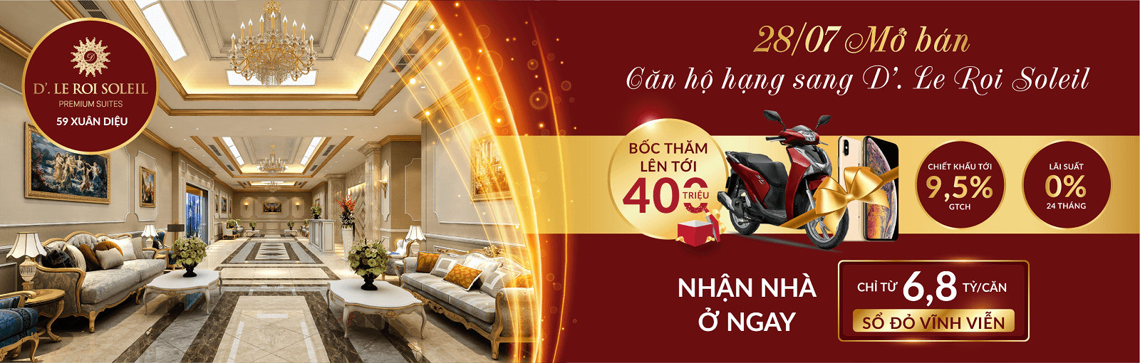 Dự án D'. Le Roi Soleil nằm trên ngã ba đường Đặng Thai Mai và đường Xuân Diệu ngợp bóng cây xanh mát. Với ưu thế vượt trội bên Hồ Tây, cư dân được thưởng thức vẻ đẹp say đắm lòng người của thắng cảnh Hồ Tây, đắm mình trong bầu không khí trong lành tràn ngập hơi thở của thiên nhiên. Không chỉ thế, từ vị trí dự án cư dân chỉ mất vài phút di chuyển tới các địa điểm quan trọng của thủ đô như sân bay Nội Bài, trường học, bệnh viện, khu hành chính hay các địa điểm vui chơi giải trí, Hồ Gươm, công viên Bách Thảo…