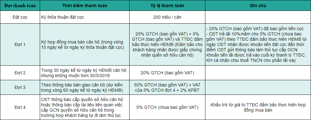 - Chiết khấu 3% GTCH cho KH thanh toán theo tiến độ thông thường