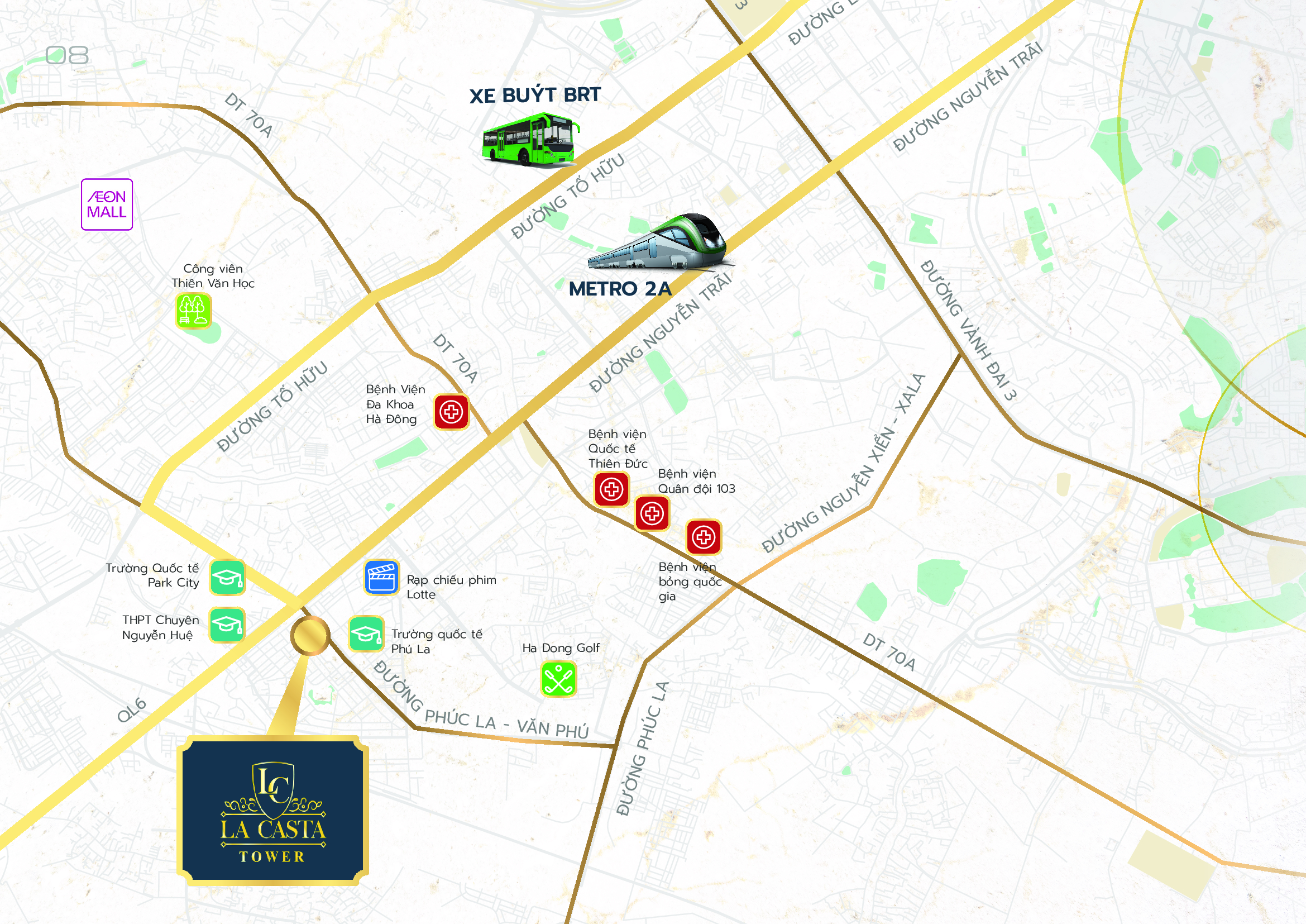Dự án nằm gần nhiều tuyến đường huyết mạch như: Nguyễn Trãi, Phúc La - Văn Phú, Tố Hữu, QL6... và các hạ tầng giao thông hiện đại đến trung tâm như: BRT, xe buýt...