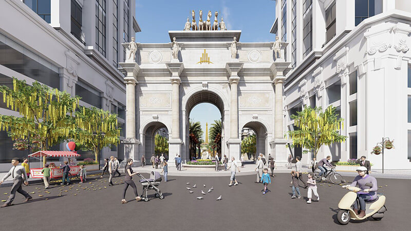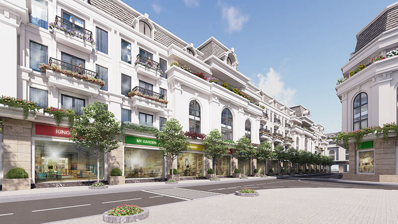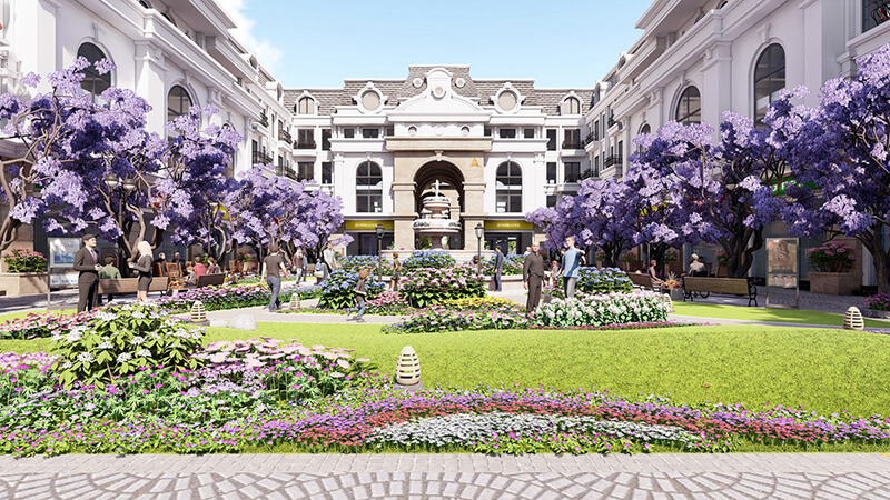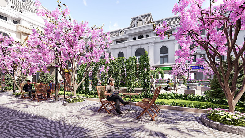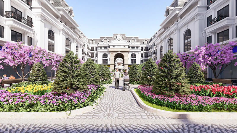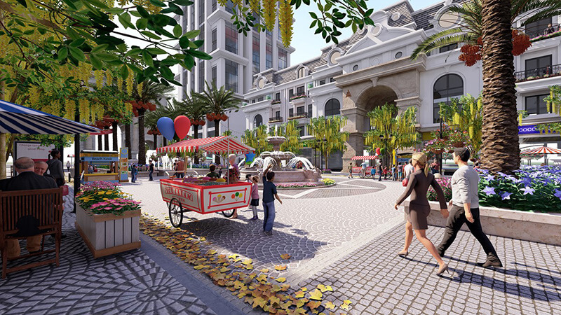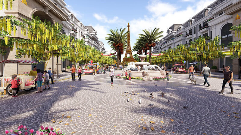 Ngay phố đi bộ là một mô hình tháp Eiffel thu nhỏ cao 27m tráng lệ, bên cạnh các hàng cây xanh mượt, thảm hoa xinh xắn. Phố đi bộ tại dự án chính là nơi diễn ra các hoạt động biểu diễn ca nhạc, văn hóa, festival đặc sắc nhằm mang tới cuộc sống thư giãn, giải trí đỉnh cao cho cư dân.