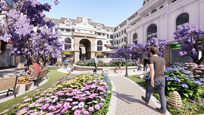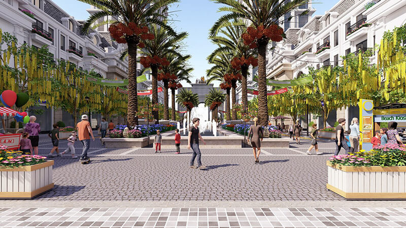 Dự án sở hữu phố đi bộ theo chuẩn mực châu Âu lần đầu tiên xuất hiện tại Thanh Hóa, phố có chiều rộng lên tới 37m, xung quanh là quảng trường nhạc nước, TTTM, các nhà hàng, cửa hiệu cao cấp…
