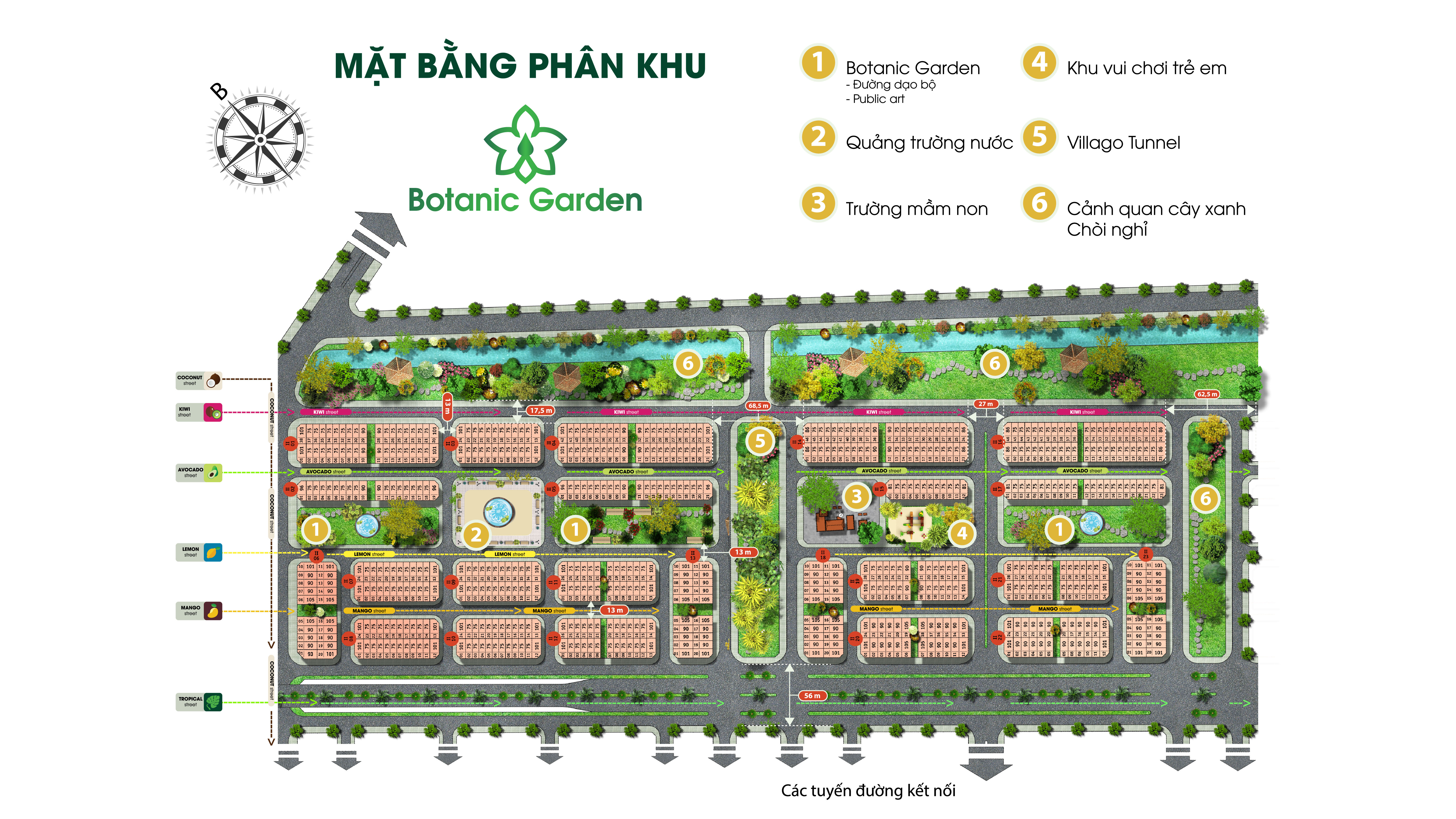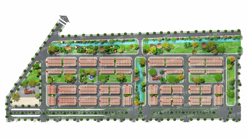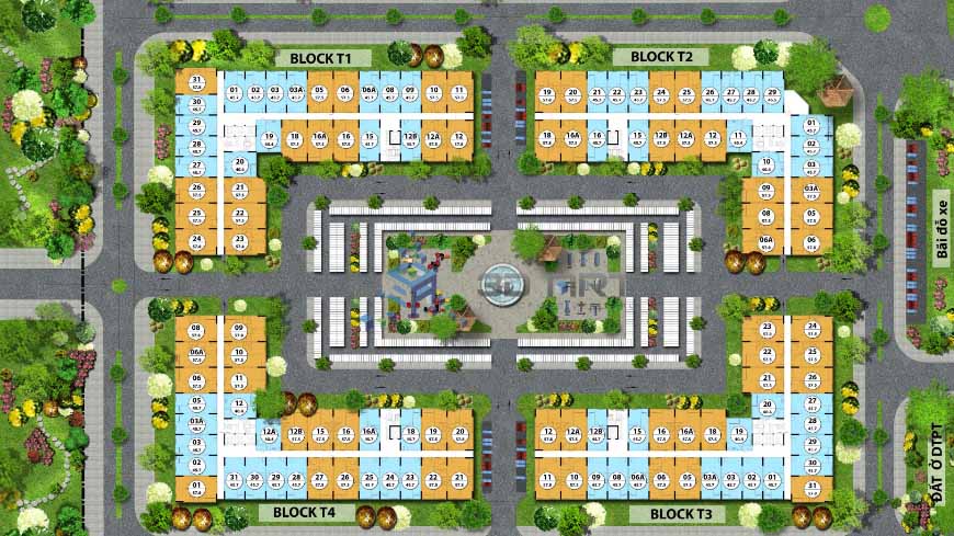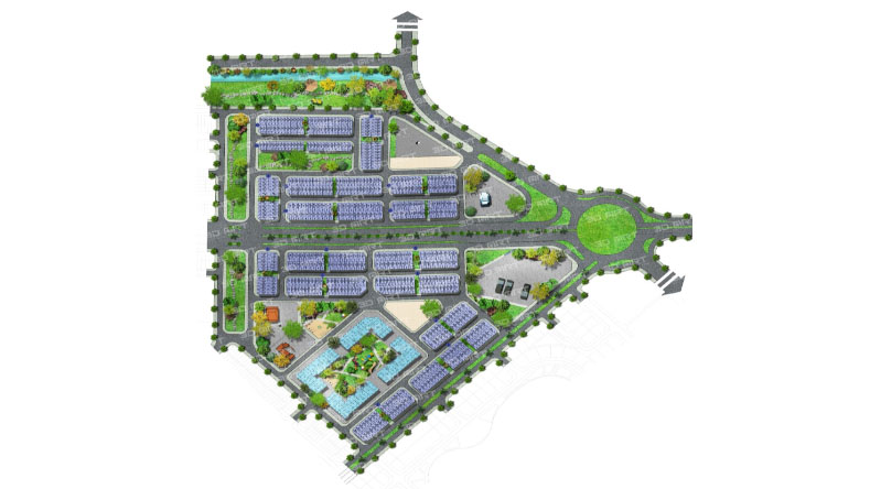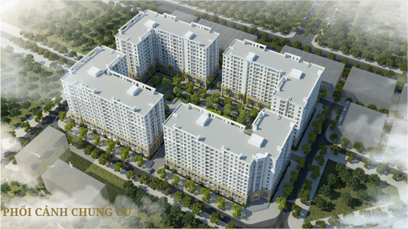 Bao gồm: Nhà ở thấp tầng, chung cư, trường học, cảnh quan cây xanh, bãi đỗ xe…