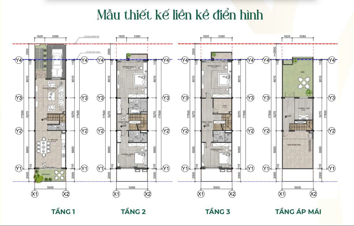 Chủ đầu tư bố trí 119 căn liền kề tại dự án với thiết kế từ 3 - 4 tầng và 4 phòng ngủ. Nhà liền kề là một trong những sản phẩm đáp ứng được nhu cầu ở đa dạng của khách hàng