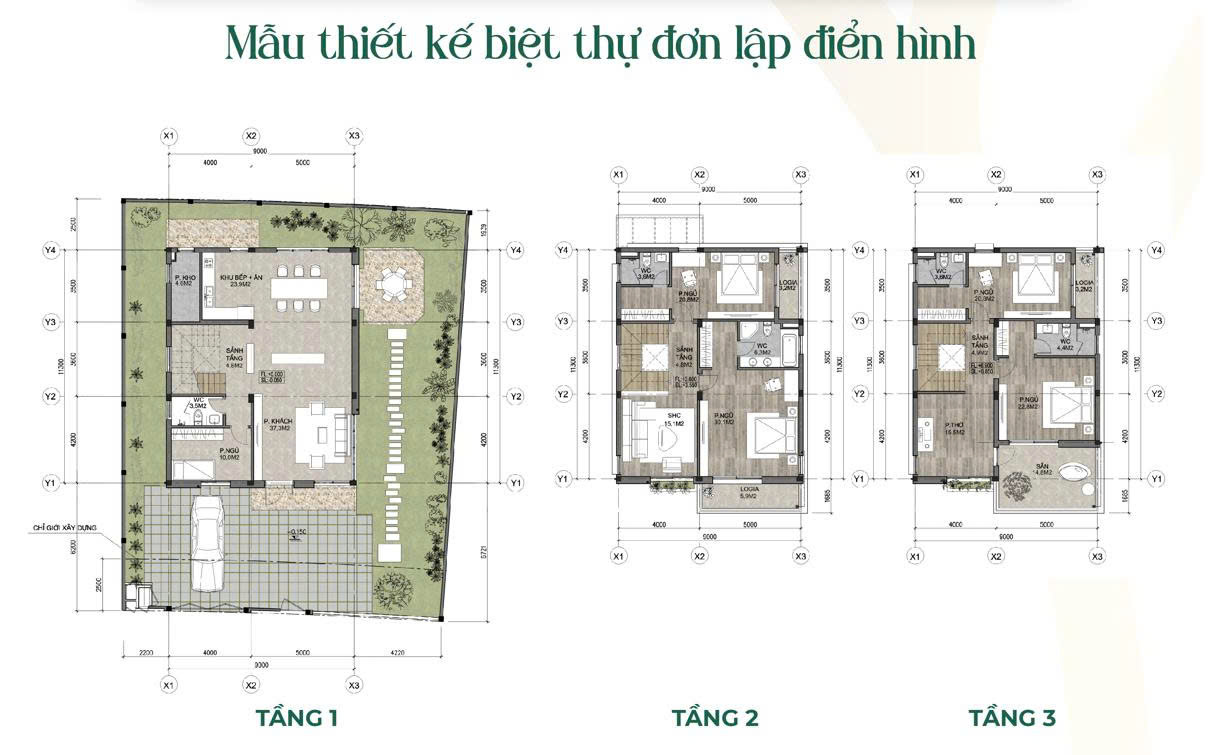 + Biệt thự đơn lập: 245 - 280 - 300 - 322m²