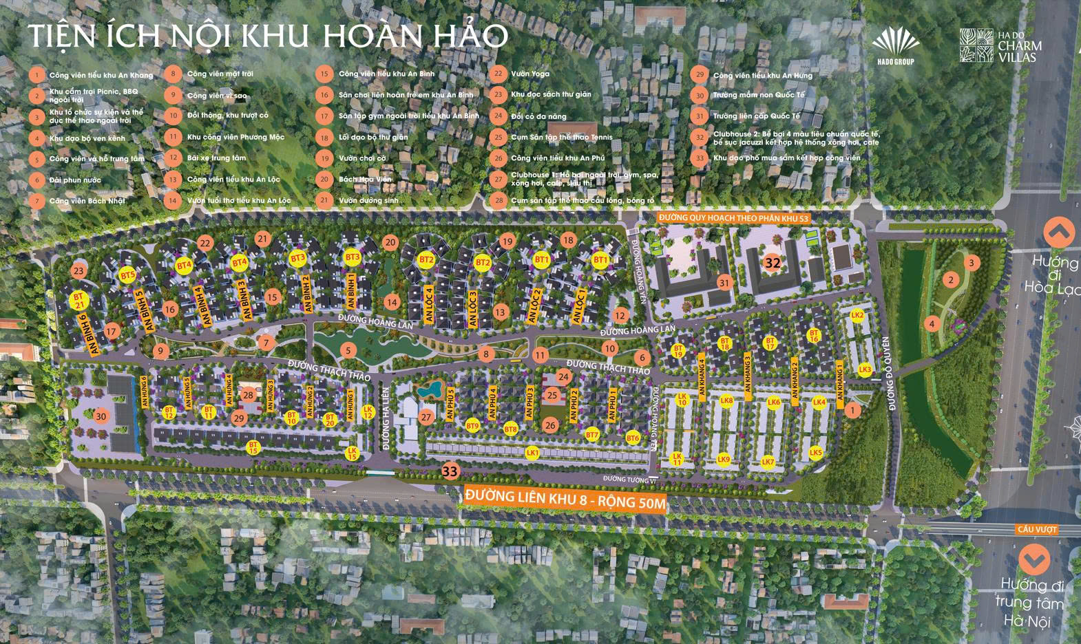 Với vị trí nằm trong vùng lõi phát triển phía Tây thủ đô – nơi hạ tầng đang được đầu tư đồng bộ bậc nhất, Hà Đô Charm Villas không chỉ là nơi an cư lý tưởng mà còn là tài sản đầu tư tiềm năng khi quy hoạch Hà Nội mở rộng đến năm 2030 đang từng bước thành hình.
