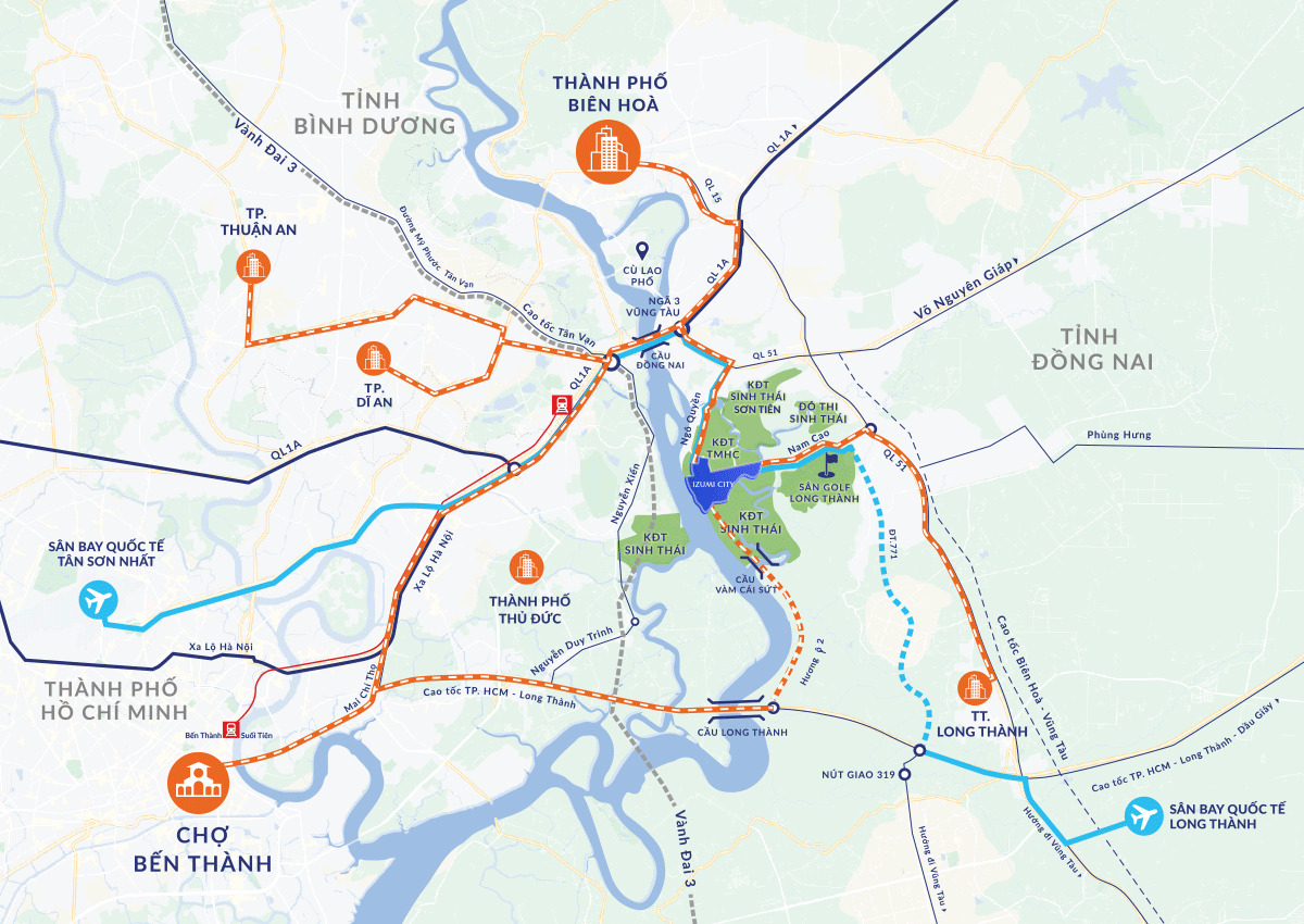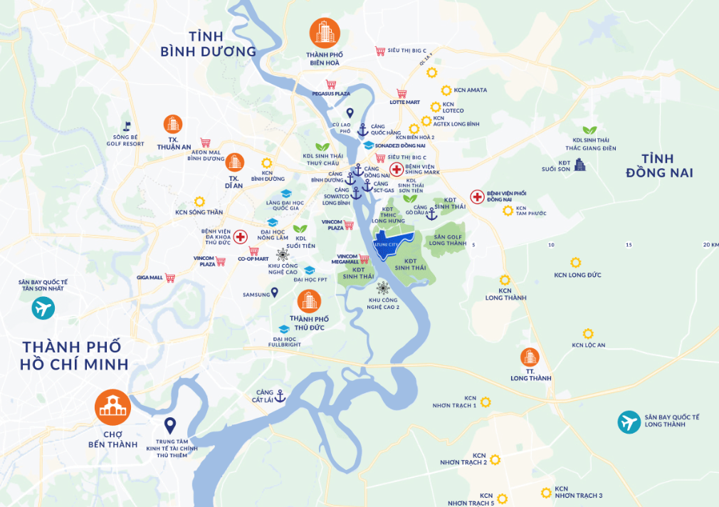 Giữa các trung tâm kinh tế , thủ phủ công nghiệp lớn nhất Việt Nam gồm Tp. Hồ Chí Minh, Tp.Thủ Đức, Tp. Biên Hòa, khu vực hành lang ven sông Đồng Nai được quy hoạch thành một trung tâm kinh tế mới, một khu vực phát triển mạnh mẽ tại khu Đông với cơ sở hạ tầng giao thông và công nghiệp hiện đại hàng đầu cả nước.