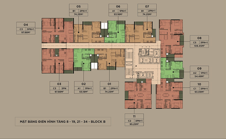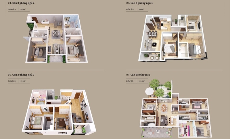 Diện tích đất: căn tiêu chuẩn 105 - 120 m2, căn góc: 168 - 271,6 m2