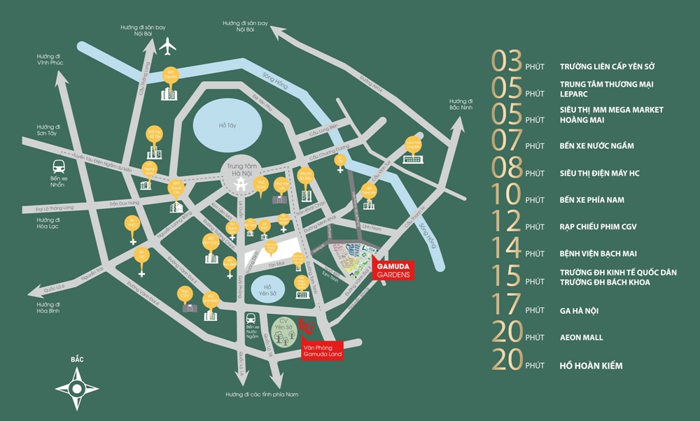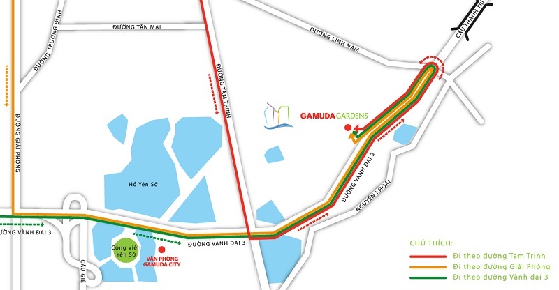 Tọa lạc tại vị trí chiến lược cửa ngõ phía Nam Hà Nội, dự án Gamuda Gardens (Km 4.4 Pháp Vân, Trần Phú, quận Hoàng Mai, Hà Nội) được thừa hưởng hệ thống giao thông phát triển với tuyến đường Vành đai 3 đi qua dự án, gần trục đường Tam Trinh, Lĩnh Nam, dễ dàng kết nối với Quốc lộ 1A và 1B.