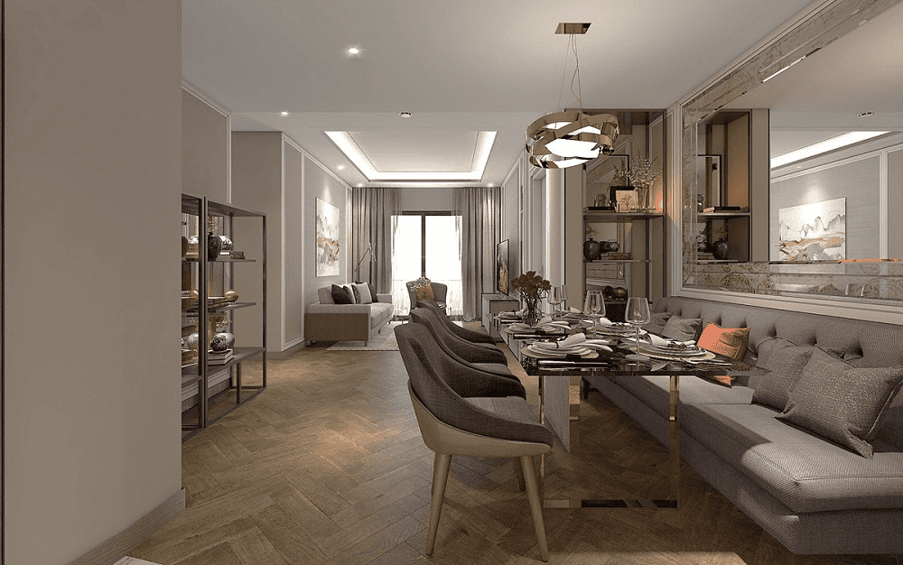 Thiết kế nội thất sang trọng với những điểm nhấn trang nhã và tận dụng tối đa ánh sáng tự nhiên, nuông chiều các giác quan của chủ nhân căn hộ. Các hình khối kiến trúc được sắp đặt theo các tỷ lệ vàng, vẽ ra không gian sống tinh tế và đẳng cấp.