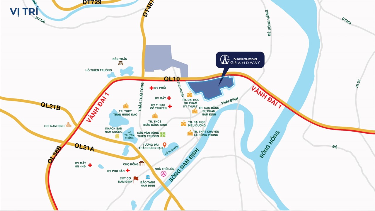 Nam Cường Grand Way nằm gọn trong vành đai 1 – tuyến đường chiến lược kết nối từ cầu Tân Đệ qua Quốc lộ 10 đến cầu Tân Phong. Đây được xem là “trái tim đô thị mở rộng” sau khi huyện Mỹ Lộc chính thức được sáp nhập vào thành phố, đưa tổng diện tích lên tới 120,9km² với dân số hơn 364.000 người.