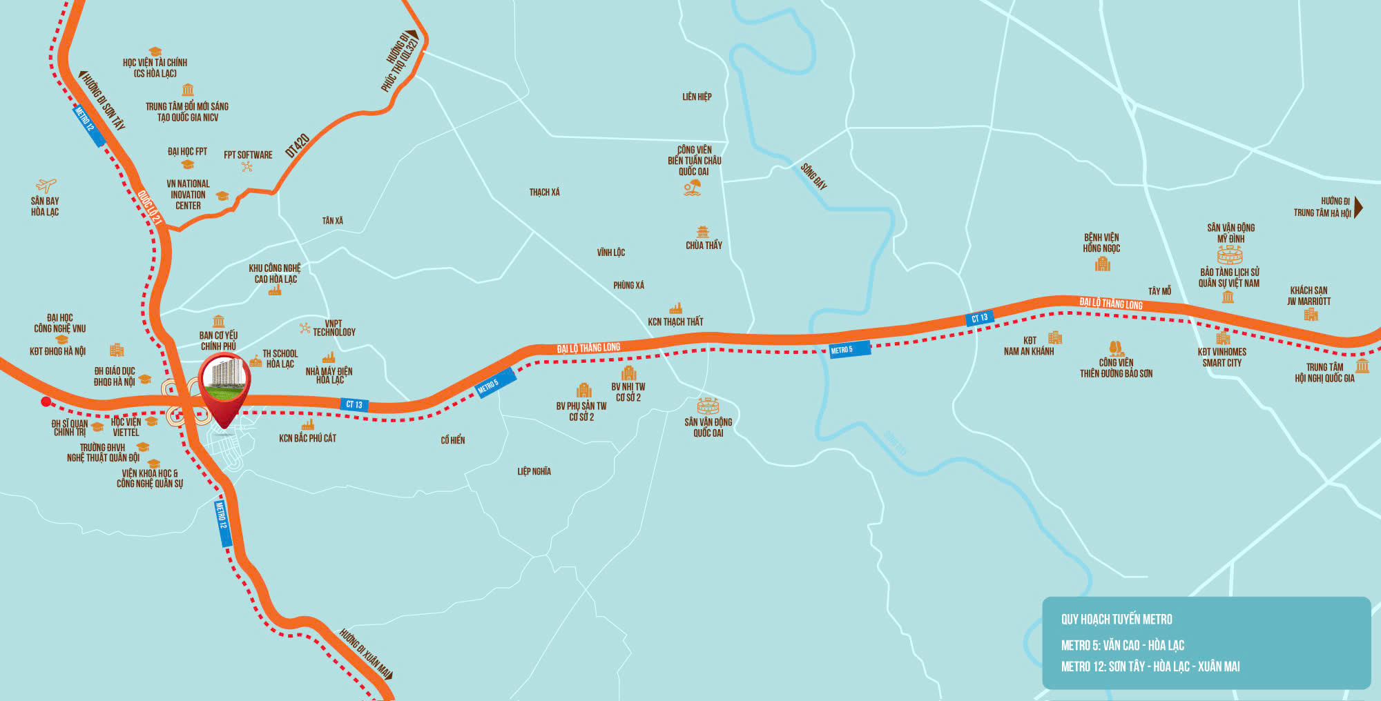Trong tương lai, khi các tuyến Metro số 5 và số 12 được đưa vào hoạt động, khu vực này sẽ bước vào một thời kỳ phát triển giao thông công cộng hiện đại. Đây không chỉ là xu hướng tất yếu của một Thủ đô hiện đại mà còn mang đến cho cư dân Phenikaa Tower sự lựa chọn di chuyển nhanh chóng, tiết kiệm chi phí và thời gian. Bên cạnh đó, tiềm năng gia tăng giá trị bất động sản cũng sẽ được thúc đẩy mạnh mẽ khi hạ tầng hoàn thiện.