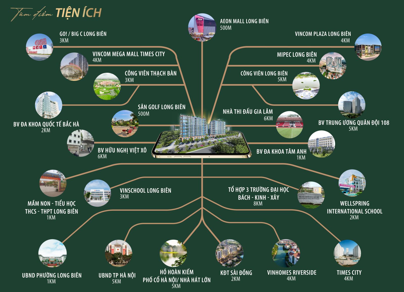 Tọa lạc trên tuyến đường Cổ Linh huyết mạch, tiếp giáp với các tiện ích của đô thị hiện hữu như TTTM AEON Long Biên, Các trường học, bệnh viện, sân bay,... Tiếp cận nhanh với trung tâm Hà Nội và trục đường cao tốc Hà Nội - Hải Phòng,...
