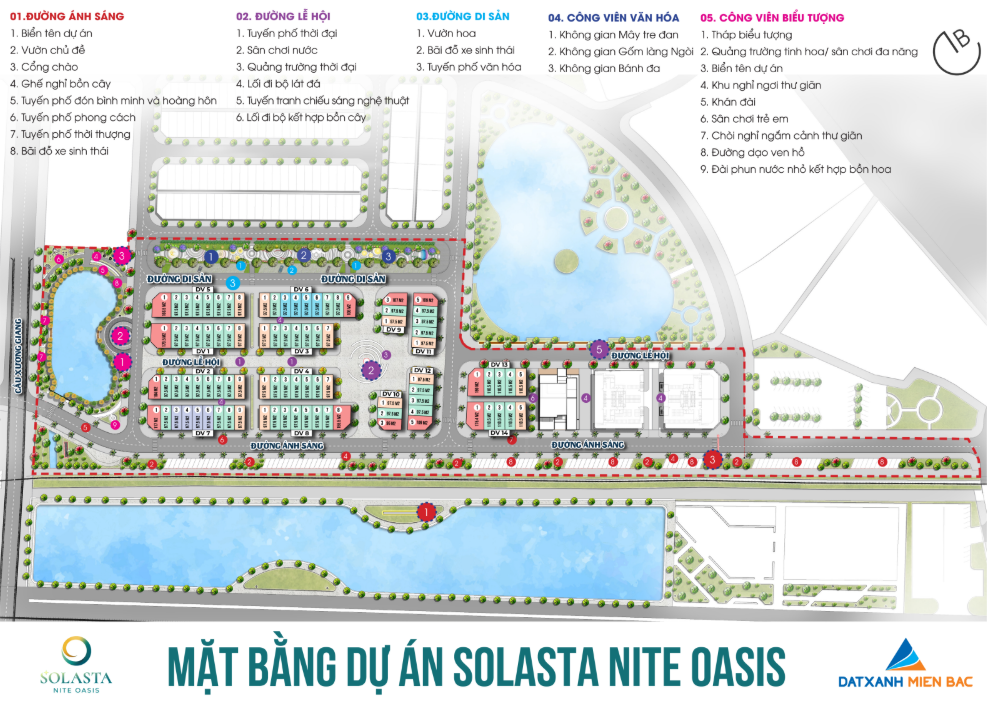 - Dự án được quy hoạch thành 3 tuyến đường chính: Đường Ánh sáng - Đường Lễ hội - Đường Di sản và 1 quảng trường trung tâm