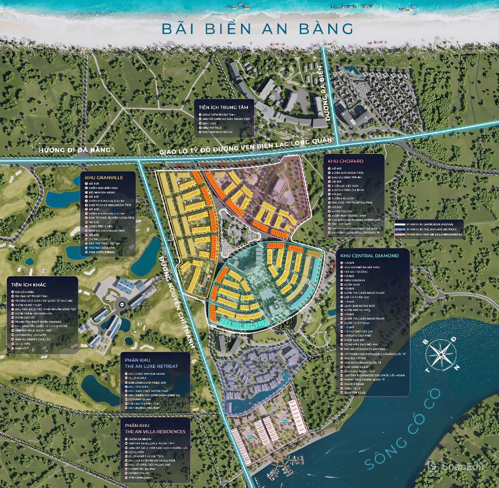 Khu đô thị The An Heritage được quy hoạch thành 4 phân khu: Granville, Chopard, Central Diamond và Provence Castle, với tổng số 1.000 sản phẩm phù hợp nhu cầu ở, nghỉ dưỡng, đầu tư như sản phẩm shoptel, boutique hotel, villas song lập, villas đơn lập,…