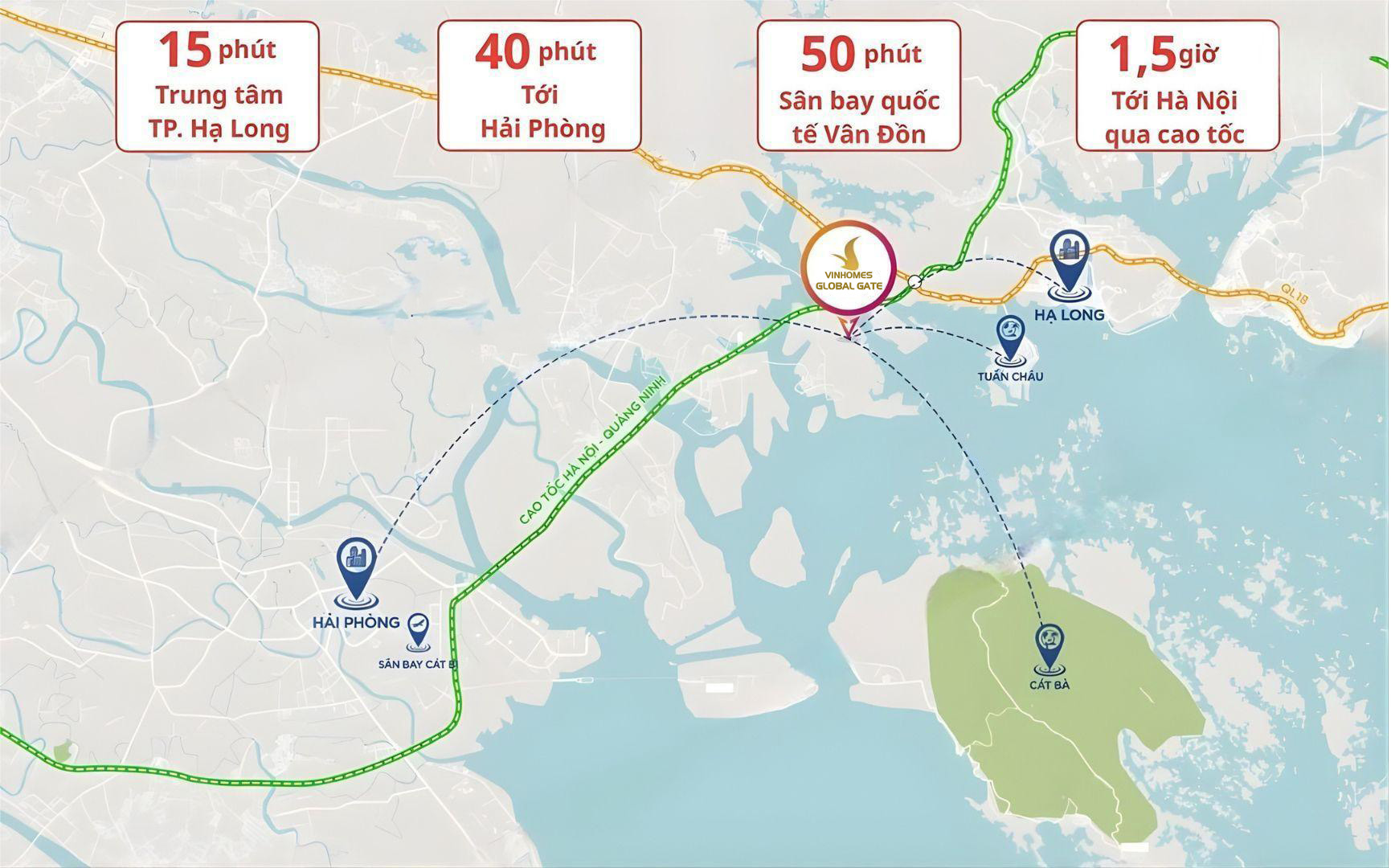Vinhomes Global Gate Hạ Long sở hữu vị trí chiến lược tại khu vực cửa ngõ phía Tây của Hạ Long, kết nối trực tiếp với thị xã Quảng Yên – nơi đang được quy hoạch trở thành trung tâm công nghiệp, logistics và đô thị mới của tỉnh Quảng Ninh.