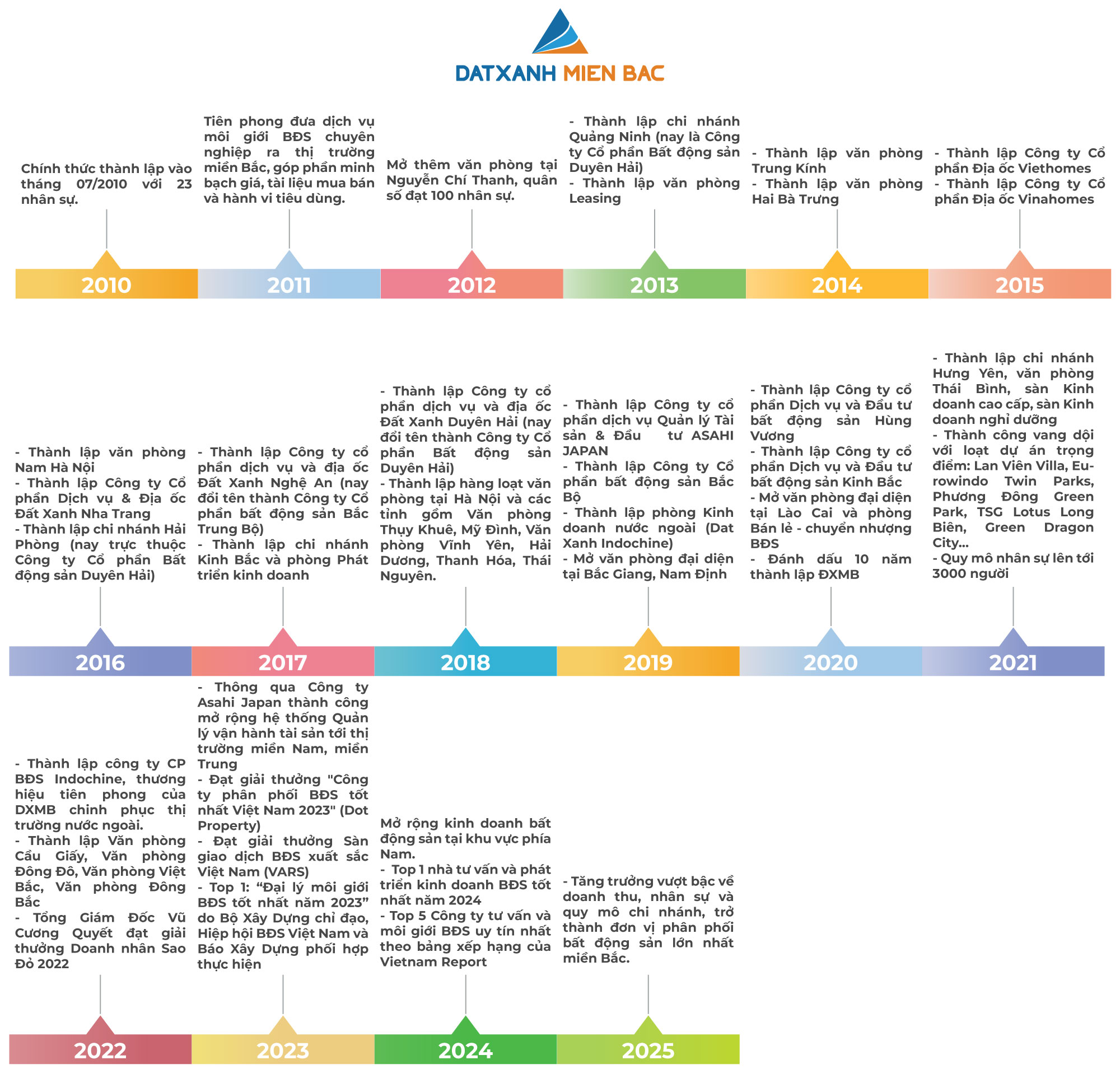 Được thành lập ngày 07/07/2010, Đất Xanh Miền Bắc hoạt động kinh doanh chính trong các lĩnh vực như: Phân phối và tư vấn triển khai bất động sản, Đầu tư và phát triển dự án bất động sản, Quản lý và cho thuê bất động sản, Xây dựng công trình kỹ thuật dân dụng, Tư vấn thiết kế nội thất...