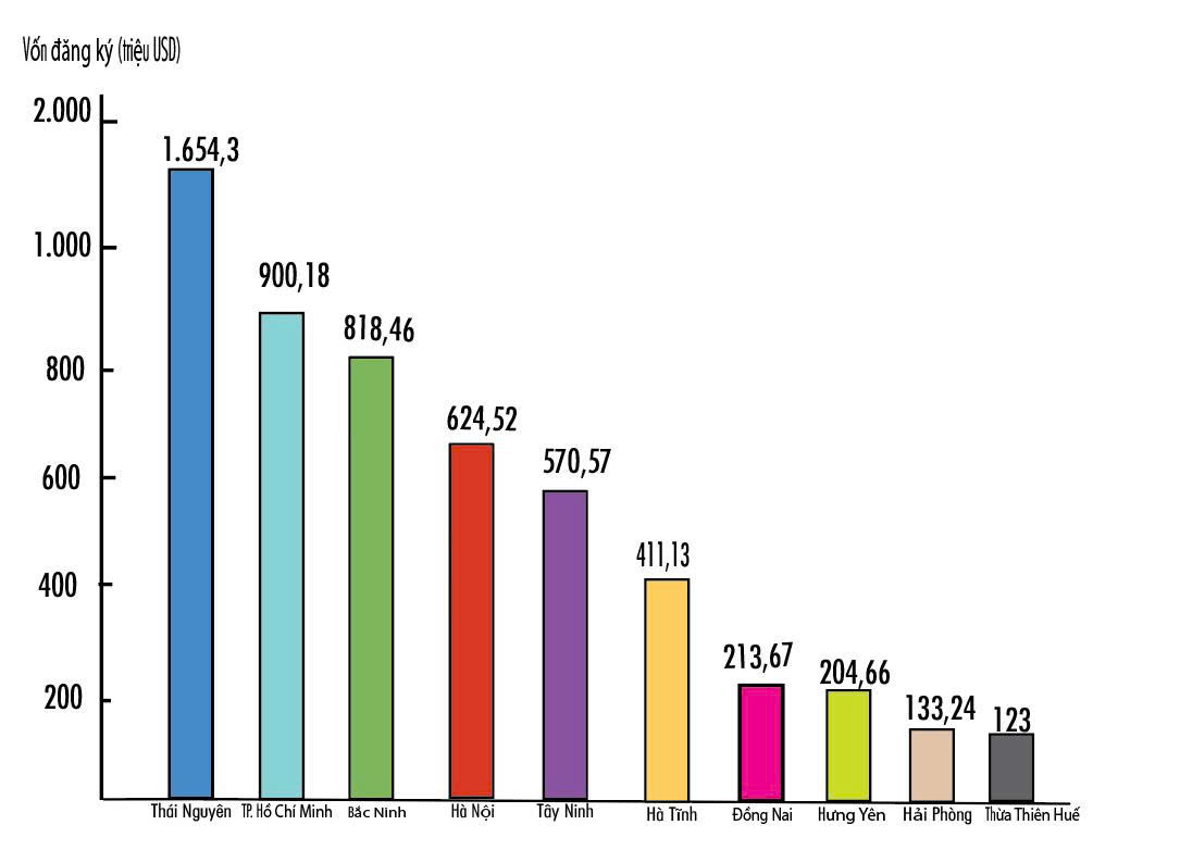 Thái Nguyên dẫn đầu cả nước về vốn đăng ký FDI (Nguồn số liệu: Cục Đầu tư nước ngoài (FIA))