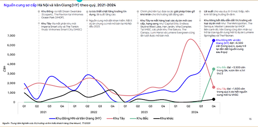 Nhìn từ thống kê nguồn cung sơ cấp tại Hà Nội và Văn Giang (Hưng Yên) giai đoạn 2021 - 2024 từ One Mount, có thể thấy xu hướng này đang thể hiện rõ ràng ngay từ giai đoạn quý 4 năm 2024, nguồn cung căn hộ sơ cấp tại phía Tây chỉ chiếm khoảng 10 - 15% tổng cung thị trường và đang tiếp tục giảm mạnh.