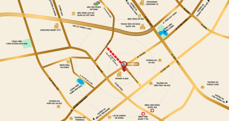 Đặc biệt, trong thời gian sắp tới khu vực này sẽ khởi công tuyến đường Vũ Trọng Khánh kéo dài (đường nối cầu Mỗ Lao) có chiều dài khoảng 3km, chiều rộng lên tới 40m với 6 làn xe. Điểm đầu tiên của tuyến đường này chính là nút giao đường Tố Hữu - Vũ Trọng Khánh và điểm cuối tại nút giao với đường Lê Quang Đạo kéo dài. Nhờ vậy, từ QMS Top Tower có thể dễ dàng kết nối thẳng tới trục Đại lộ Thăng Long và Vành đai 3 để di chuyển tới các khu vực khác hoặc sân bay Nội Bài vô cùng thuận tiện.