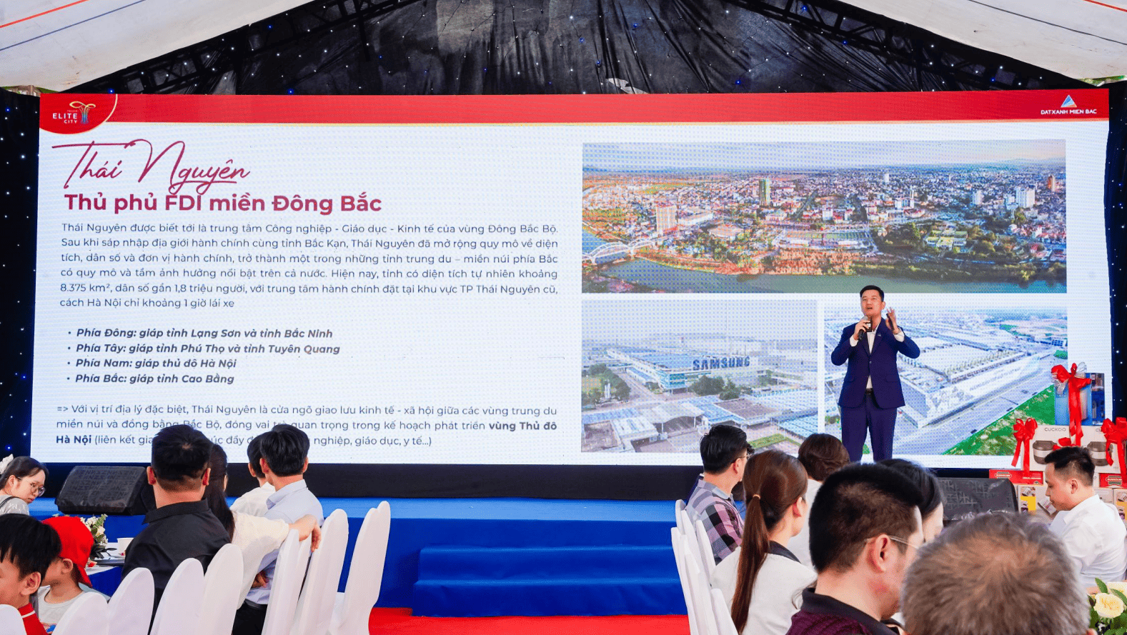 Tại sự kiện, ông Trần Anh Tuấn - Tổng giám đốc Công ty Cổ phần Dịch vụ Bất động sản Đông Bắc Bộ Homes (Công ty thành viên của Đất Xanh Miền Bắc) chia sẻ: “Tecco Elite City thực sự ở vị trí có tiềm năng phát triển rất lớn. Ngoài việc nằm tại trung tâm vùng lõi phát triển mới của Thái Nguyên thì dự án còn nằm tại vùng thị trường có lợi thế vượt trội về 3 mảng: công nghiệp, giáo dục và dân số”.