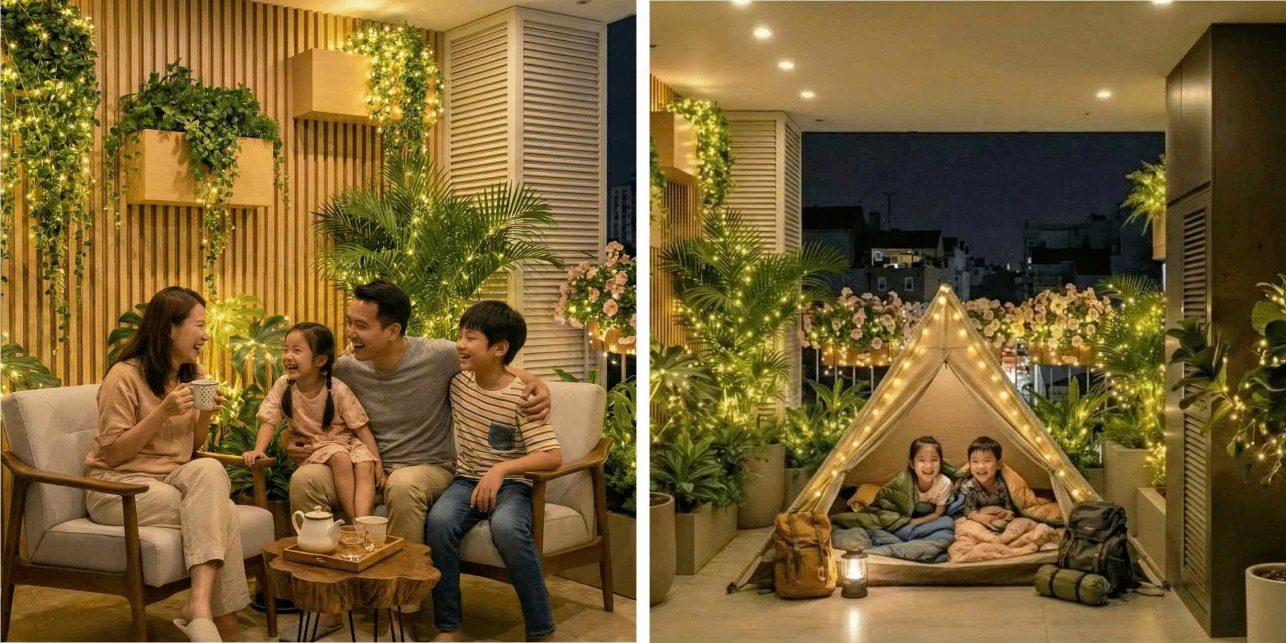 Đặc biệt, đón đầu xu hướng sống xanh - sống bền vững, căn hộ Lotus 1 sở hữu ban công lớn lên tới 10m2 – nơi gia chủ có thể linh hoạt biến tấu nên những "không gian xanh" độc bản, góc cafe chill cho cả gia đình hoặc không gian lều trại mini cho con trẻ trong chính căn hộ của mình.